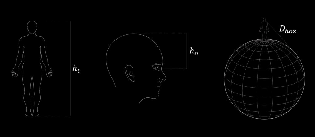 Insira abaixo sua altura total (Ht) e a altura dos olhos (Ho) até o topo da cabeça para descobrir a distância do horizonte.